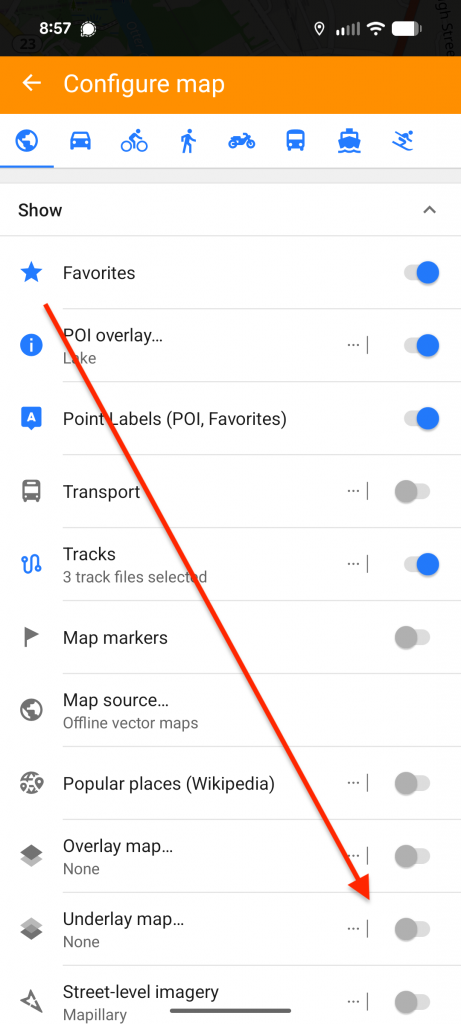 For Expiry time setting 1440 min (1 day) will tell OsmAnd to look for new tiles after 1 day. You could set this to a slightly lower number if you want OsmAnd to refresh tiles more frequently. Ideally you would have zoomed around and cached the tiles before you go out on the ice so that you don’t have to worry about them [slowly] loading while navigating. Likewise, if you will be exploring areas without mobile service, set a longer (or no) expiry time so that you don’t have to worry not having the tiles when you are out. You can always manually clear the cache of the source and re-download the tiles by zooming around.