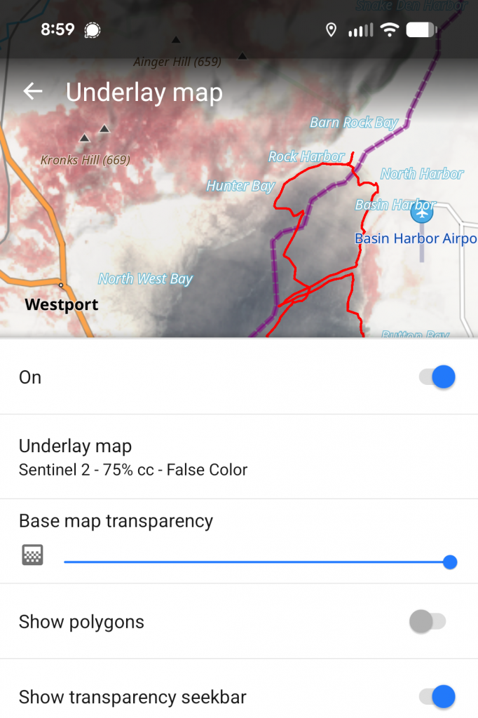 Using the OsmAnd app and the instructions below, you can see your real-time position overlaying recent satellite imagery while you are exploring the ice.